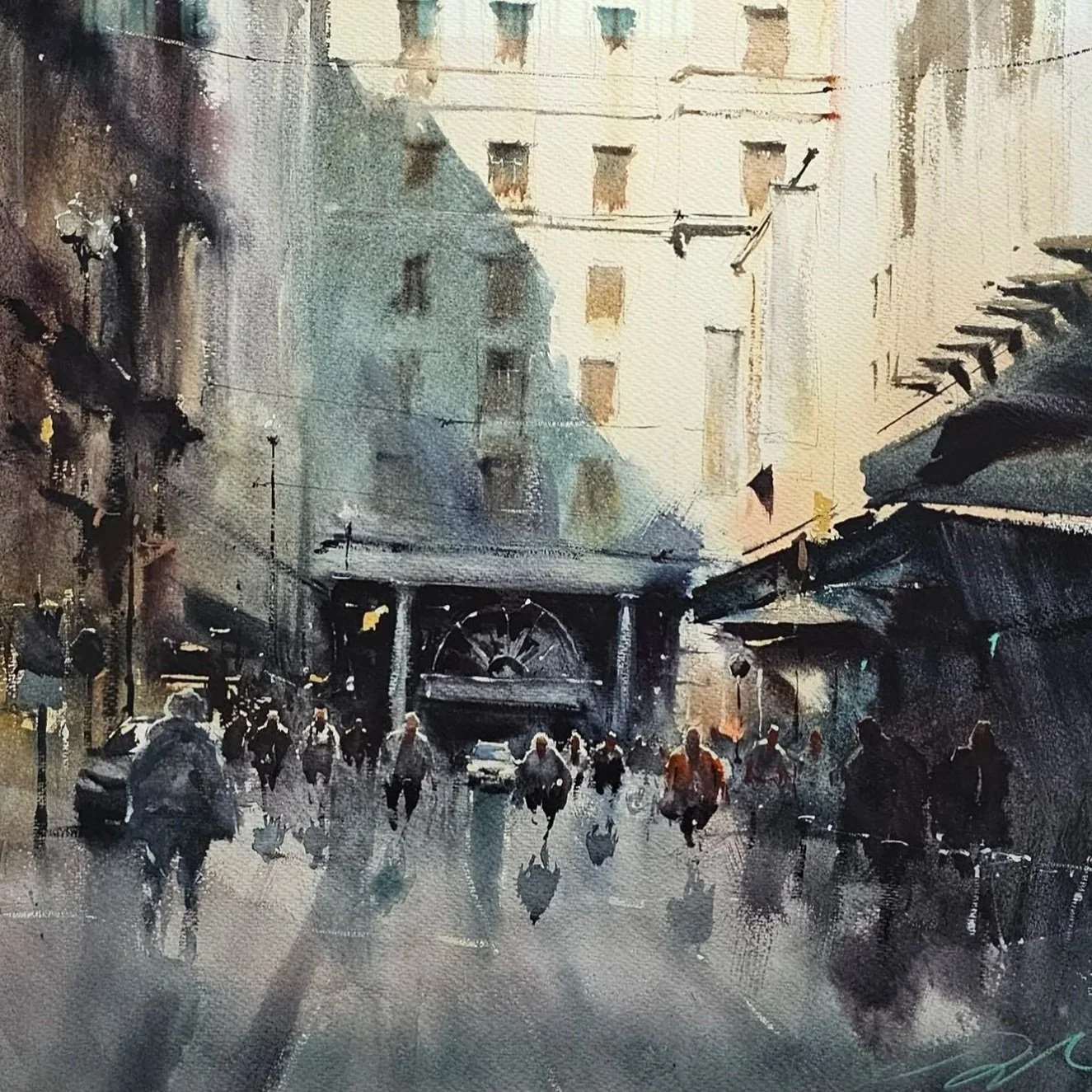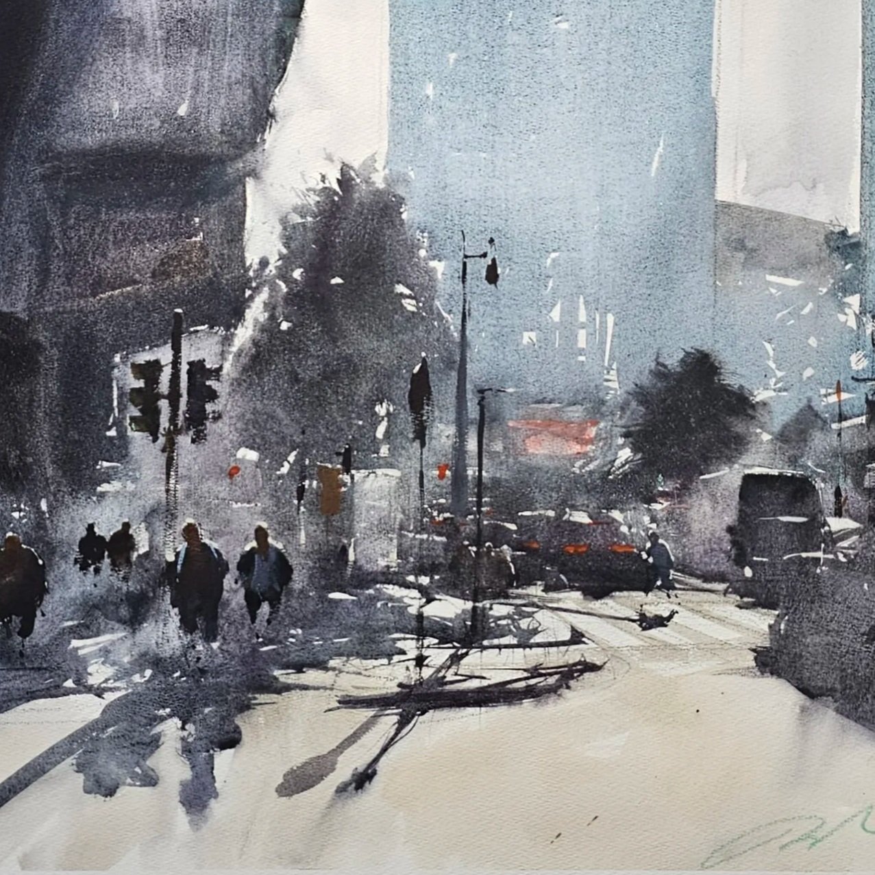 Daniel Lopez is a versatile artist who adapts to various media, including ceramics, watercolour, photography, digital, and traditional painting. His work reflects a unique perspective shaped by his experiences in different cities. From his upbringing in Andalusia to his artistic development in Cuenca and Havana, culminating in his current work in Birmingham, Daniel’s artistry is influenced by the vibrant history and dynamic urban landscape of the second city. His current work, with its blend of architectural styles, reflects the city’s evolving character and his fascination with its dramatic contrasts.