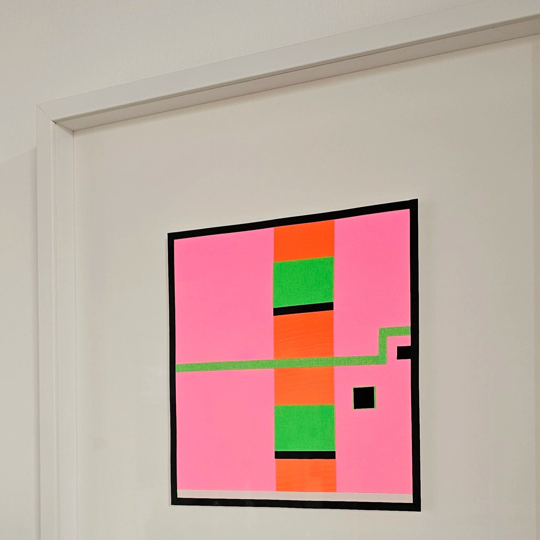 Artist Claire Buckerfield is renowned for her experimental drawings and installations. Emphasising vibrant colours, she creates her work using non-traditional materials such as industrial tape and ribbon. Her drawings celebrate the everyday and the mundane, drawing inspiration from urban architecture and the spaces people inhabit.